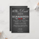 Este convite de recepção de casamento pós-casamento em estilo vintage com tipografia em lousa de giz cinza e branca LOOK tem uma variedade de fontes com rolos e corações vermelhos românticos. Tem uma nova abordagem divertida na tendência Comer, Beber e Casar, com um jogo de palavras que diz "Comi, bebi e casei" para refletir o evento de casamento anterior. É mostrado aqui em papel básico. É facilmente personalizado com suas próprias informações. Há algum texto personalizável que você pode editar da maneira que desejar. ALÉM DISSO, observe que tudo será impresso como aparece no seu monitor. A Zazzle não editará nada para erros de digitação ou desalinhamento, etc., e eu não verei depois que você tiver feito o pedido. Se precisar de ajuda com sua redação, por favor me envie um e-mail ANTES de fazer o pedido. Se houver outros itens que você precise para tornar seu evento ainda mais especial, por
