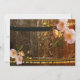 Um convite de recepção de casamento com tema de vinho, pós-casamento, apresentando um design romântico com uvas, rosas cor de pêssego e luzes festivas em um fundo de barril de vinho de madeira dourada. Lindíssimo para uma celebração em uma vinícola ou vinhedo. Este convite faz parte de uma coleção de casamento.