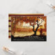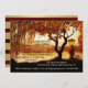 Um convite de recepção de casamento de outono, pós ou após o casamento, apresentando uma árvore colorida de outono com lanternas festivas com vista para um lago.
