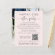 Elemento elegante e econômico para rosas claro ou anúncio privado de casamento e convite para recepções de casamento. A frente apresenta "Felizmente, nunca depois da festa" em uma simples tipografia e um roteiro de na moda com pestanas. Personalize seu anúncio e convite, crie facilmente um código QR vinculado ao seu site de casamento para que seus convidados pesquisem mais informações e RSVP on-line, e adicione seus nomes em um script semelhante a assinatura. O verso mostra sua foto favorita do casamento, seus nomes e data do casamento.