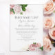 Se você já é casado, mas gostaria de celebrar com familiares e amigos, este é o convite que você precisa. Convite de recepção de casamento com bela, elegante e sofisticada estampa botânica vintage em rosa claro e rosa poeirento (rosas) e folhas de aquarela verde pintadas em branco. O texto, a fonte, o tamanho da fonte e a cor são completamente personalizáveis, para que este cartão possa ser adaptado perfeitamente às suas necessidades.