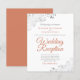 Esses convites de recepção de casamento acessíveis e econômicos são a escolha perfeita para classe, estilo e beleza dentro de um orçamento. Projetados para convidados que são convidados para a recepção, mas não para a cerimônia, eles apresentam um fundo branco clássico com arabescos e espirais prateados ornamentados em falso foil nos cantos. A tipografia inclui letras em script sofisticadas em terracota ou laranja coral para um estilo que é ao mesmo tempo simples e elegante. Uma maneira maravilhosa de convidar amigos e familiares a compartilhar da sua alegria no seu dia especial sem estourar o orçamento.