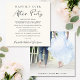 Convite quadrado de casamento ou anúncio de casamento pequeno e elegante creme. A frente apresenta "Festa Feliz para Sempre" em uma mistura de tipografia simples e um roteiro moderno. Personalize seu anúncio e convite e adicione seus nomes em um roteiro semelhante a uma assinatura. O lado reverso apresenta sua foto de casamento favorita, seus primeiros nomes e data.