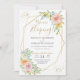 Estamos fugindo! Convite de recepção floral rosado. Encontre papelaria correspondente em nossa loja.