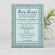 Papel de parede floral vintage azul-esverdeado em tamanhos graduados margeia a área de texto aqua pálido deste convite personalizável. O texto de exemplo é para uma recepção pós-casamento, mas pode ser personalizado para festas de aniversário, aniversários ou qualquer evento especial. O texto "Você está convidado" é uma imagem e pode ser editado, excluído (-) para adicionar seu próprio texto personalizado, se desejar. Personalize com as informações do seu evento, escolha seu próprio estilo de fonte, tamanho e cor. Adicione mais texto no verso, se necessário.