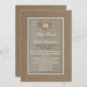 Procurando por uma recepção pós-casamento em burlap? Aqui está o modelo de convite para recepção pós-casamento que você tem procurado. Com uma burlap mais escura na borda e uma burlap mais clara no centro, que contém um coração com seu monograma. Você pode personalizar este design com a data e local em que se casou, juntamente com todos os detalhes da celebração da recepção pós-casamento. Um ótimo convite de recepção pós-casamento monogramado. Copyright henishouseofpaper