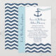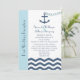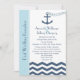 Este convite de recepção pós-casamento tem um tema náutico e apresenta as palavras "Recepção Pós-Casamento" à esquerda em uma faixa azul clara, mas o ponto focal do design é uma âncora com uma corrente em forma de coração sendo lançada em um mar em zigue-zague. Você pode personalizar o convite com o nome da noiva e do noivo, a data e o local do casamento e todos os detalhes do convite de recepção pós-casamento. Copyright henishouseofpaper