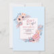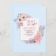 Um convite floral com fundo azul claro sobreposto por um painel com grupos de flores de canto em cor-de-rosa, pêssego e folhagem azul. <a href="http://www.freepik.com">Projetada por saravami / Freepik</a>). <br/>() A placa é fácil de personalizar com sua redação, fonte, cor da fonte, opções de forma de papel e escolha de seis tipos de papel.<br/>() Não exatamente o que você está procurando? Todos os nossos produtos podem ser personalizados para atender às suas necessidades sem custos adicionais.<br/>() Basta entrar em contato conosco em heartfelthelper@gmail.com.<br/>() Coordenar os produtos disponíveis: Apenas nos pergunte!