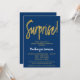 Um elegante, moderno convite de festas de aposentadoria surpresa preto e ouro. Texto do script de visão na parte superior e texto dourado abaixo com o nome em branco sobressalente
