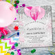 Para um elegante aniversário de 10 anos (ou qualquer idade). Um fundo metálico falso prateado. Decorado com brilho prateado rosa e falso e balões. Personalize e adicione um nome, idade e detalhes da festa. O nome é escrito com um script de estilo manuscrito