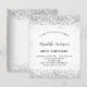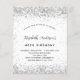 Para uma elegante festa de aniversário 40th (ou qualquer idade). Um fundo branco na moda. Decorado com falso brilho prateado. Personalize e adicione um nome e detalhes da parte. O nome é escrito com um script de estilo manuscrito Back: fundo prateado falso e brilho falso.