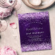 Um convite moderno, na moda e glamouroso para uma festa de aniversário de 21 ruas (ou qualquer idade). Um fundo roxo profundo, colorido, com poeira cintilante rosa. A cor roxa é irregular. O nome é escrito com um moderno estilo escrito à mão. Personalize e adicione os detalhes da sua festa.
