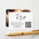 Cartão de resposta de casamento moderno com "Rsvp" em uma fonte elegante. Insira o endereço do seu site de casamento para criar um código QR que os convidados podem escanear para responder online. O verso apresenta sua foto sobreposta com seus primeiros nomes e data de casamento.