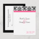 Cartão de RSVP para combinar com o nosso convite de casamento elegante fúcsia rosa quente, preto e branco, com sutil acento floral damasco e faixa horizontal colorida. Personalize online com os detalhes do seu casamento.