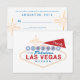 O icônico desenho do letreiro "Welcome to Las Vegas" aparece na frente com a inscrição "RSVP". O verso tem área para o nome do convidado com "responda antes da data", aceitação e opções de refeição.