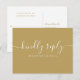 Um cartão de resposta com assinatura em ouro elegante e tipografia chic. O verso apresenta seus detalhes e um divertido pedido de música para convidados. Criado por Thisisnotme©