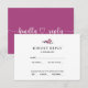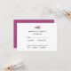 Um cartão de resposta RSVP de casamento elegante com um ramo de bougainville mediterrâneo em aquarela em rosa e burgundy com alguma folhagem. O verso do cartão é verde sólido.