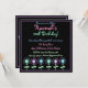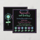 Este divertido design retrô é ótimo para qualquer tipo de festa - personalize-o para torná-lo perfeito para você. Flores em azul, rosa e verde em um fundo preto quadrado são impressionantes e funky. Certifique-se de verificar também nosso envelope, adesivos e selos coordenados!