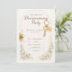 Design refinado de aquecimento da casa apresentando tons bege suaves, verde murcho salvia e acentos de chave dourada dentro de um layout arqueado. Linhas limpas e detalhes suaves de aquarela enquadram o espaço, ideal para hospedar uma reunião de nova casa com um ambiente quente e polido.