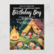 Menino de Aniversário! Convide amigos e familiares para a sua festa de aniversário com este simples design de menino de aniversário de foto em torno da fogueira Cartão de convite de aniversário em torno da fogueira. Adicione sua foto favorita e personalize com nome, número do aniversário e todas as informações da festa de aniversário! Altere para qualquer coisa que você queira.