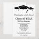 Este design de convite de reunião de classe minimalista em formato vertical apresenta texto preto em um fundo totalmente branco com três boinas de formatura pretas como a borda superior. Personalize suas informações, remova informações ou edite usando a ferramenta de design para selecionar uma cor, tamanho e estilo de fonte de sua preferência.