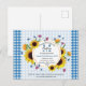 Convite de reunião de família econômico fofo e colorido, com fundo xadrez azul. Elemento de flor silvestre criativa usado como arranjo floral botânico, incluindo girassol, centáurea e folhagens. Por favor, personalize seu texto para personalizar o convite de acordo com as suas necessidades. Pode ser usado para piquenique de verão, mas também para festa de churrasco, etc.
