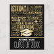 Design de reunião com nuvem de palavras, para uma turma de formandos de uma escola. Chapéu de formatura incluído como elemento. Por favor, personalize o texto na frente e no verso.