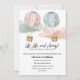 Crie uma celebração celestial com este encantador convite de revelação de gênero de balão de ar quente! Com balões pintados à mão em tons suaves de rosa e azul, flutuando através de nuvens pastéis com acentos de brilho dourado, este design define o tom para uma revelação mágica e caprichosa.