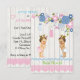 Country, Rustic Baby Reveal chá de fraldas convite com jarros de mason cor-de-rosa e azul, e um bebê bebê e uma princesa de fundo branco.
