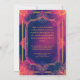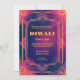 O "Convite Rádio à Revista" captura o espírito encantador de Diwali com uma mistura requintada de elegância tradicional e design moderna. O cobrir da frente apresenta um elaborado trabalho de arte, enquadrado por uma majestosa arca, adornada com padrões florais e geométricos detalhados que ecoam a beleza da antiga arte indiana. Esses lapões são ricos em embelezados em dourado e matizes criticas profundas, criando um contraste luxuoso contra o fundo vibrante. O pano de fundo do convite é um gradiente cativante, começando pelo índigo rico e pelo azul-da-noite nas bordas e fazendo a transição para tonalidades radiantes de açafrão e coral em direção ao centro. Esse efeito gradiente simboliza a transição da escuridão para a luz, refletindo a essência de Diwali — uma celebração da iluminação e do triunfo. A interação das cores evoca uma atmosfera festiva e jubilante, incorporando o espírito da ocasião. No coração do design, um belamente detalhado motif de penas de pavão agarra o fundo do arco. A pena de pavão, com seu simbolismo de graça, beleza e renovação, adiciona um toque de encanto real ao convite. O espaço central na arca é reservado para o texto do convite, com a opção de usar tipografia elegante branca ou dourada que se destacará de forma gritante contra o pano de fundo vibrante. Este elemento design garante que os detalhes do evento sejam proeminentes e esteticamente agradáveis. O cobrir traseiro do "Convite de Reverificação Radiante" continua o esquema de cores vibrantes, fornecendo amplo espaço para informações adicionais, como mensagens pessoais ou detalhes de RSVP. O design coeso garante que o cobrir traseiro complementa a frente, mantendo o tema luxuoso e celebratório ao longo de todo o processo. O "Convite Rápido à Revista" é mais do que apenas um convite; é uma obra de arte que celebra Diwali com estilo e sofisticação. A intrincada trabalho de arte e cores dinâmicas oferecem uma introdução cativante a uma noite de festividade, estabelecendo o palco para uma celebração memorável e alegre