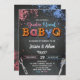 O cartão de convite do quadro de discussão para gênero revela festa barbeque com brilho rosa e azul.