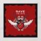 Anuncie o seu casamento com este convite de Save the Date não convencional em estilo rock and roll com guitarras elétricas cruzadas, asas e ornamentos vintage em vermelho e preto.