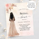 Um fundo rosa dourado, cor-de-rosa-claro. Uma noiva, rosas cor-de-rosa, grama-pampas. Personalize e adicione um nome e detalhes da parte. 1 folha = 1 convite impresso de borda a borda.