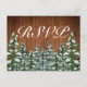 Cartão postal de RSVP para a sua celebração. Madeira marrom rústica, fundo nevado e floresta nevada. Estilo aconchegante e vintage country. Mais itens estão disponíveis neste estilo em nossa loja. Você pode editar ainda mais o design, alterar cores, fontes e adicionar texto extra clicando no link "personalizar ainda mais".