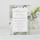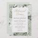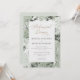 Estes convites de janto de ensaio minimalistas modernos, 5 x 7, apresentam um design de folha abstrato em tons de sábio poeirento, algas e sábio, com o título "Janto de ensaio" em letras grandes de caramelo e espaços reservados para todos os detalhes da sua ocasião especial de ensaio.