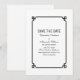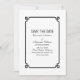 Anúncio de Salvar a Data Deco Chic simples e minimalista com uma moderna moldura ornamental art déco preta. Este convite de salvar a data clássico e elegante é fácil de personalizar com os detalhes do seu casamento. Encontre mais opções de personalização clicando em Personalizar.