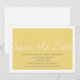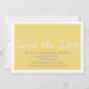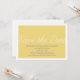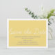 Anúncio de Salvar a Data Caprichoso em amarelo e branco com um design de tipografia simples e divertido. Este convite de salvar a data da moda é fácil de personalizar com os detalhes do seu casamento. Para mais opções de personalização, clique no botão Personalize.