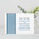 Anúncio de Salvar a Data com Borda de Chevron Chic e Moderno, apresentando um padrão de borda de chevron simples em azul escuro e branco. Este design elegante definirá o tom para um casamento sofisticado. Fácil de personalizar, basta adicionar os detalhes do seu casamento nos campos de texto fornecidos. Clique em "Personalizar" para encontrar mais opções de personalização.