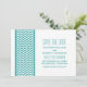 Anúncio de Salvar a Data com Borda de Chevron Chic e Moderno apresentando um padrão de borda de chevron simples em turquesa e branco. Este design elegante definirá o tom para um casamento sofisticado. Fácil de personalizar, basta adicionar os detalhes do seu casamento nos campos de texto fornecidos. Clique em "Personalizar" para encontrar mais opções de personalização.