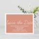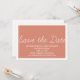 Anúncio de Salvar a Data com Capricho em laranja e branco com um design de tipografia simples e divertido. Este convite de salvar a data da moda é fácil de personalizar com os detalhes do seu casamento. Para mais opções de personalização, clique no botão Personalize-o.