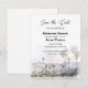 Este cartão de convite de salvar a data apresenta a icônica vista da praia e da montanha como visto na orla de Santa Bárbara, Califórnia. Todo o texto é editável para atender às suas necessidades personalizadas.
