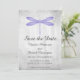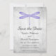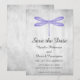 Convite de casamento elegante e simples para salvar a data, com uma libélula roxa em um fundo cinza desgastado. Este design é uma escolha única para anunciar um casamento moderno. Fácil de personalizar com detalhes do seu casamento. Clique em "Personalizar" para mais opções.