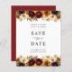 Moderno Rústico Girassol Rosa Peônia Borgonha Vermelho Roxo Floral Aquarela Outono Casamento no Campo Salve a Data