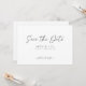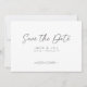 Anúncio de Salvar a Data Minimalista Branco com uma fonte moderna personalizada e caligrafia elegante.