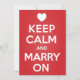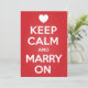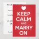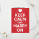 O 'Case com Calma' imita o popular design 'Mantenha a Calma e Continue', mas aqui é feito para convites de casamento. Um coração branco está no lugar da coroa tradicional acima do texto.
