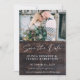 Convite de Salvar a Data Rústico com Duas Fotos na Madeira - apresentando duas das suas fotos favoritas. O convite apresenta madeira de celeiro para uma estética rústica. Perfeito para um casamento de Primavera, Verão, Outono ou Inverno.