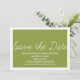 Anúncio de Salve a Data Caprichoso em verde oliva e branco com um design de tipografia simples e divertido. Este convite de salve a data da moda é fácil de personalizar com os detalhes do seu casamento. Para mais opções de personalização, clique no botão Personalize-o.