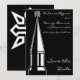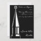 Um convite de casamento para salvar a data com uma ilustração gráfica em preto e branco da torre e cruz de uma igreja. O verso apresenta uma cruz em fundo preto.