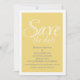 Anúncio de Save the Date de Caligrafia em amarelo e branco com um design de tipografia sofisticado. Este convite de save the date elegante e chique é fácil de personalizar com os detalhes do seu casamento. Para mais opções de personalização, clique no botão Personalize.