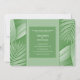 Você está planejando um casamento ao ar livre ou evento especial? Estes convites de save the date de casamento com tema tropical oferecem um apelo divertido e clássico. Características tons de cor verde aparados com folhas tropicais. Use para complementar temas de casamento tropical e eventos especiais. A frente do cartão exibe "Save the Date" enquanto o verso inclui os detalhes do seu evento. Use o modelo para personalizar.